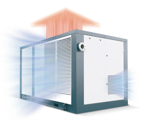 冷却系统采用强效离心风扇,直接吸入较冷空气进行冷却,冷却器本身亦有板大换热面积,冷却效果至佳。离心风机位于机体内部的吸入孔将热空气直接排出,使空压机内部始终保持较低温度,同时显著降低运行噪音。 清洁风冷冷却器时,无需拆装导风罩只需卸下盖板即可完成。
